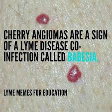 Once the cells are overflowing with Babesia they spontaneous rupture. The red blood cells are destroyed. They clog up the kidneys and spleen. The liver must process all of the new infection. The blood is full of junk now. The immune system is going haywire. The lumph system now has to flush out even more. New Babesia can then spread throughout the body. They go on to infect more red blood cells again and the cycle repeats every several months with a relapse of symptoms. The person keeps getting flu like symptoms. Their joints keep hurting. Maybe it’s the wandering arthritis but that doesn’t explain the fever. The destruction of red blood cells and small blood vessels can cause bruising and formation of petechiae (small red spots on the skin).