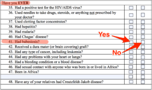 6. Ah, but what about blood testing, you ask? Do they screen donors for this blood disorder? Surely the donors should be told they have infected blood, you say.. As of this date, 6-24-17, there is no FDA-approved test that screens for babesia in the blood.