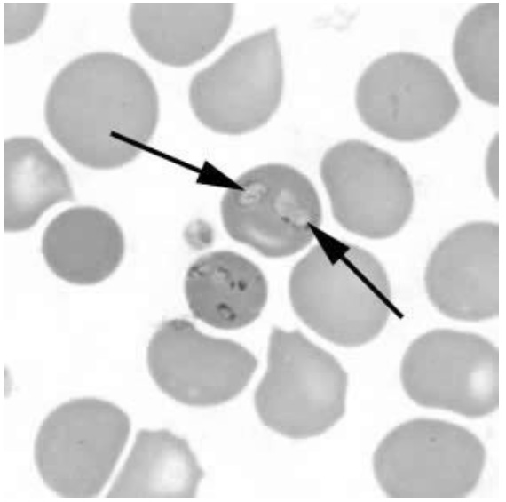 Babesia infected red blood cells. Remember, Babesia infects the blood.
