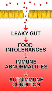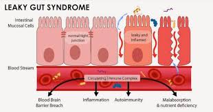 Toxins and undigested food leaks through these holes that begin forming in the gut. The gut wall becomes permeable and all sorts of bad nasties enter the bloodstream unchecked.  It’s called Leaky Gut Syndrome.