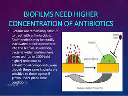 Antibiotics work best by attacking fast-growing infections. Biofilm production is a slowly reproducing creeper of a process. The biofilm protective layer reproduces so slowly that antibiotics can’t get through it. The biofilm “observes” the antibiotic but doesn’t really absorb it per se.