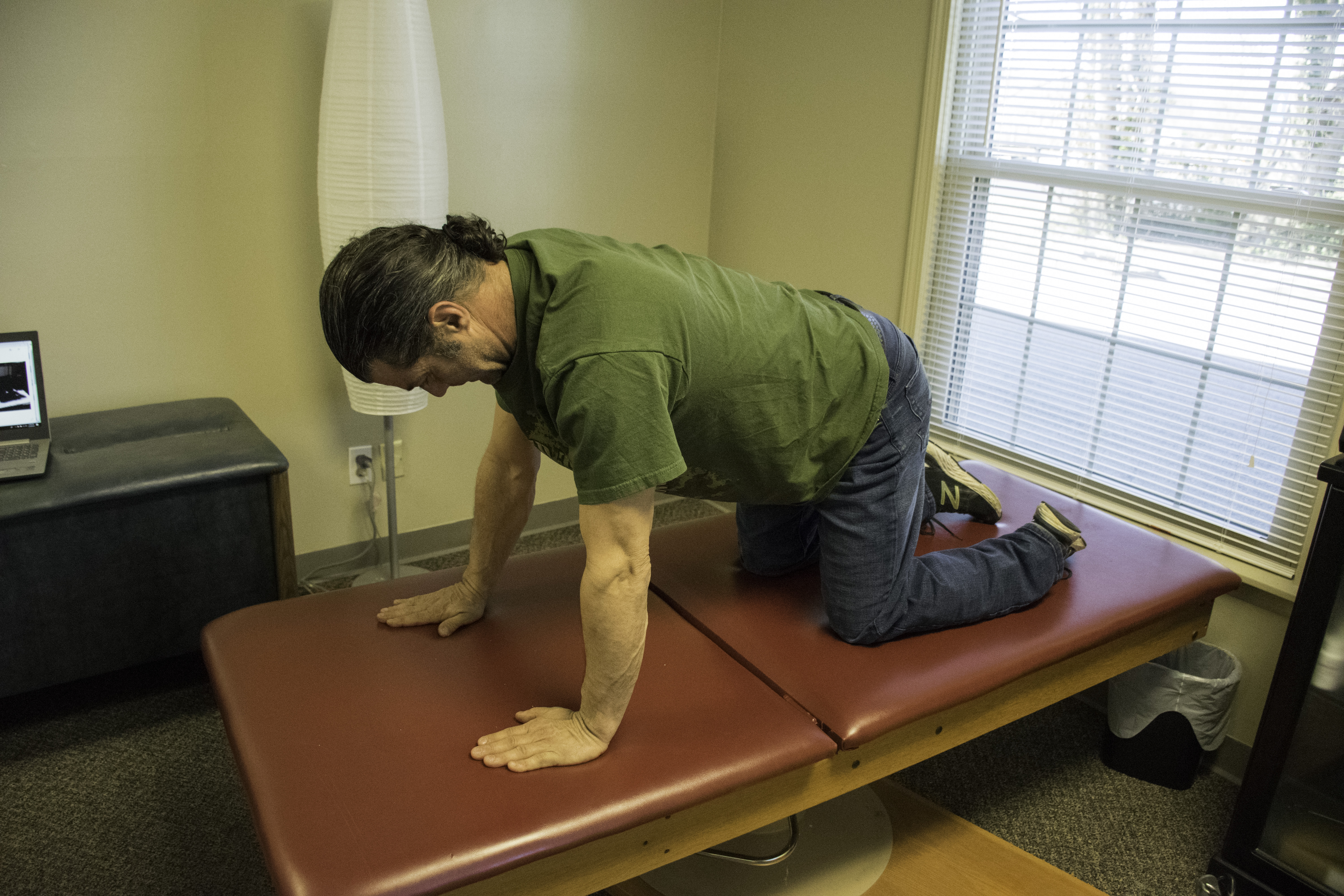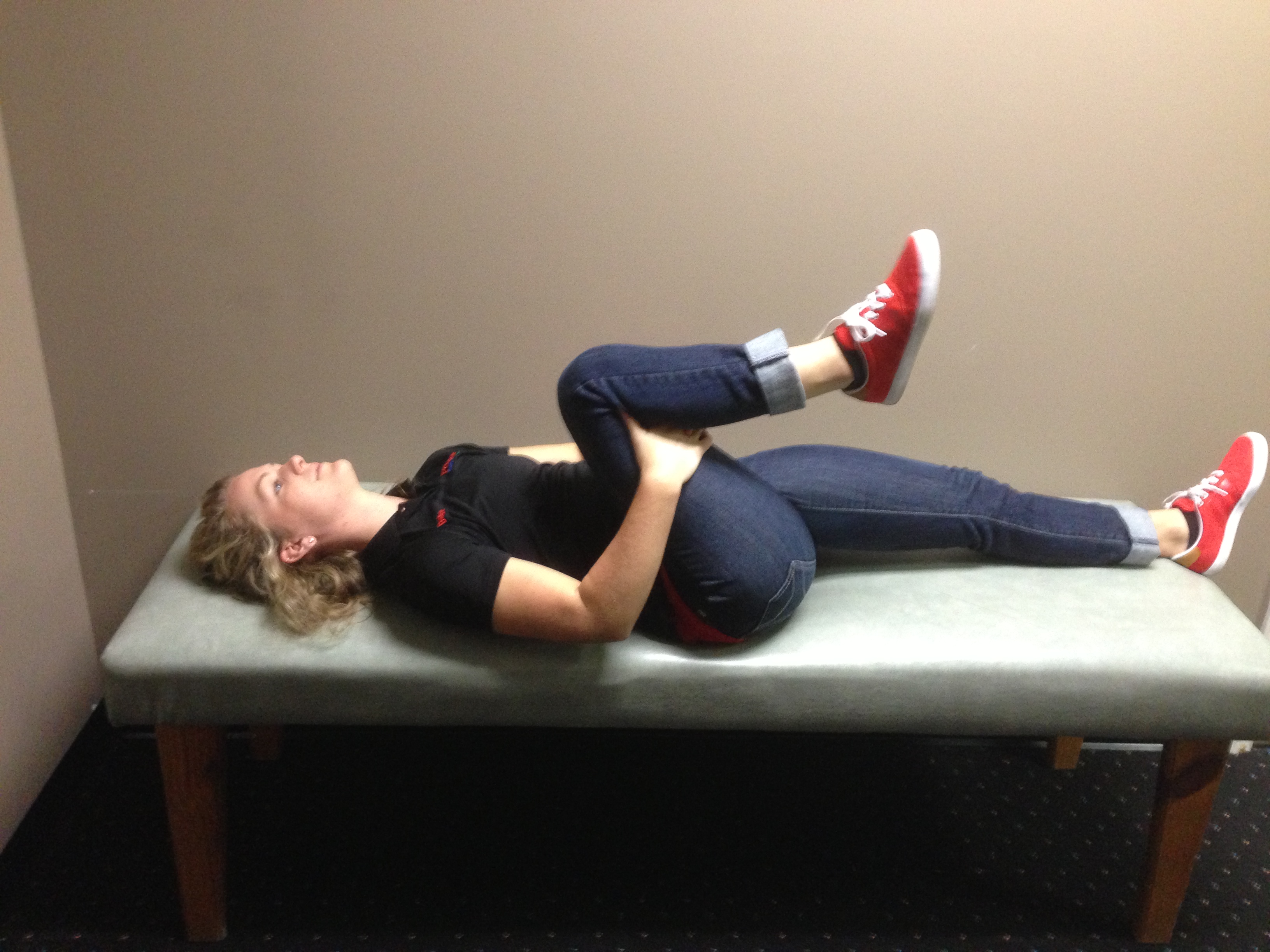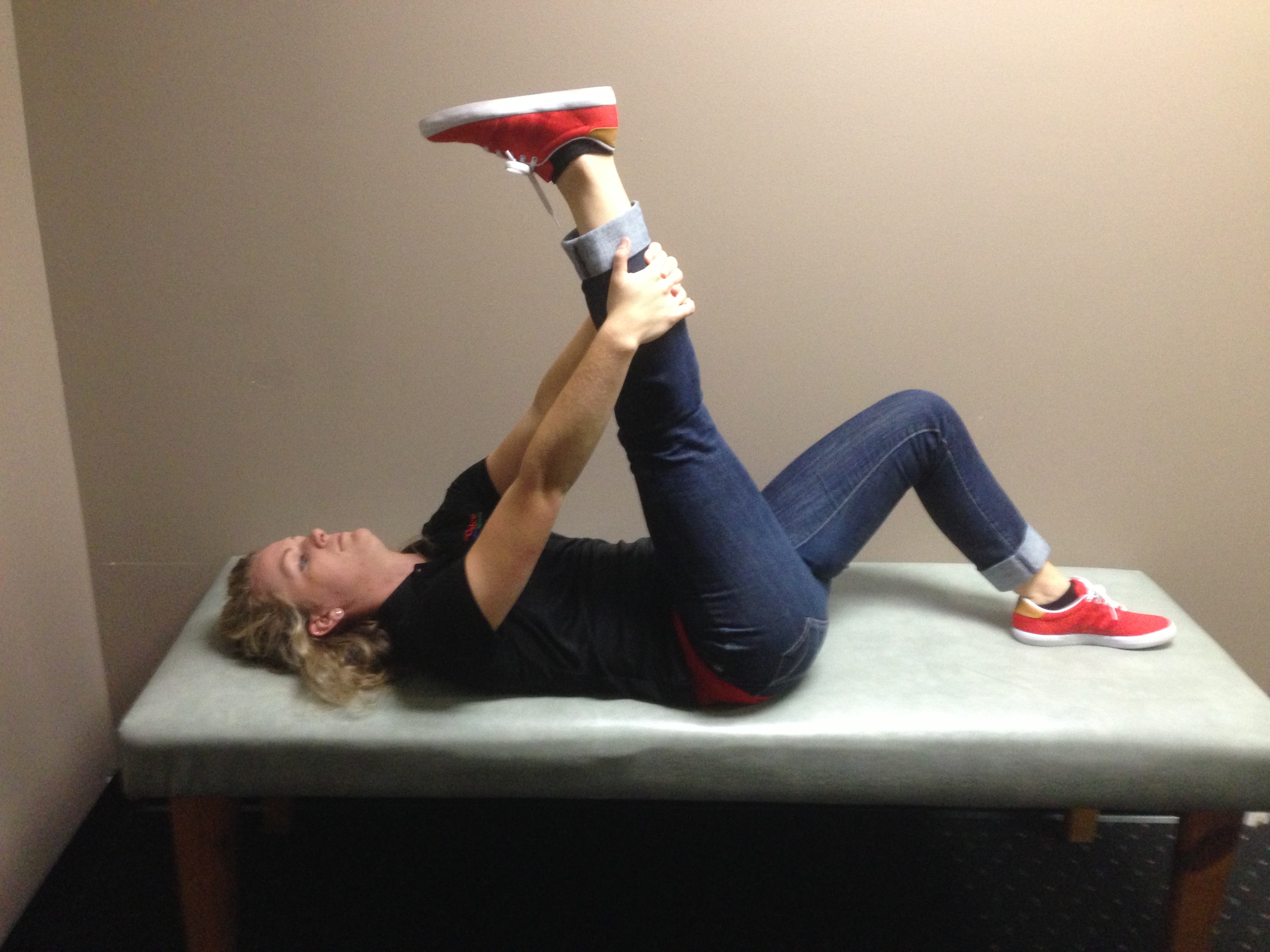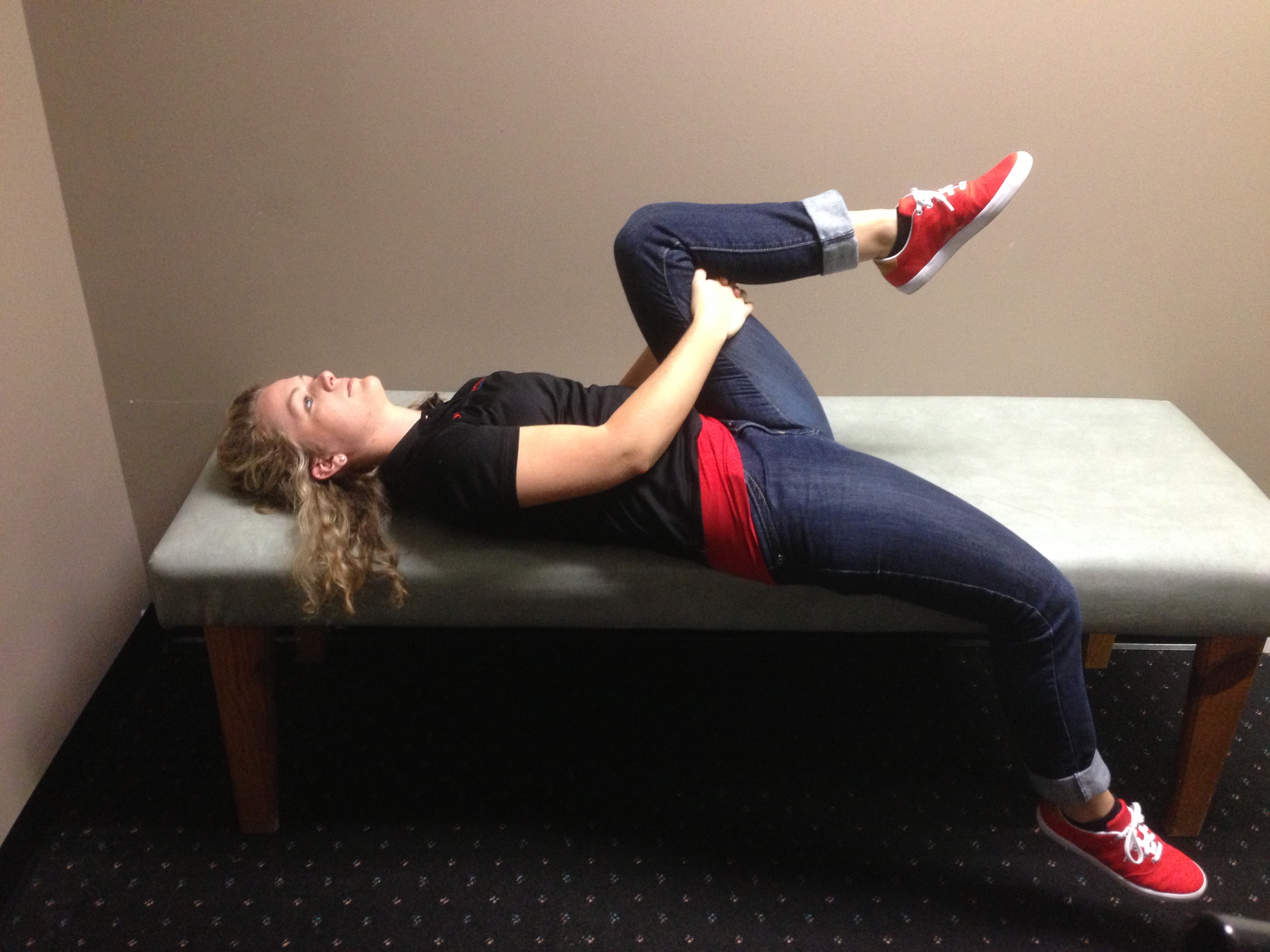 Hip Flexor Stretch – note drop the other leg off the table