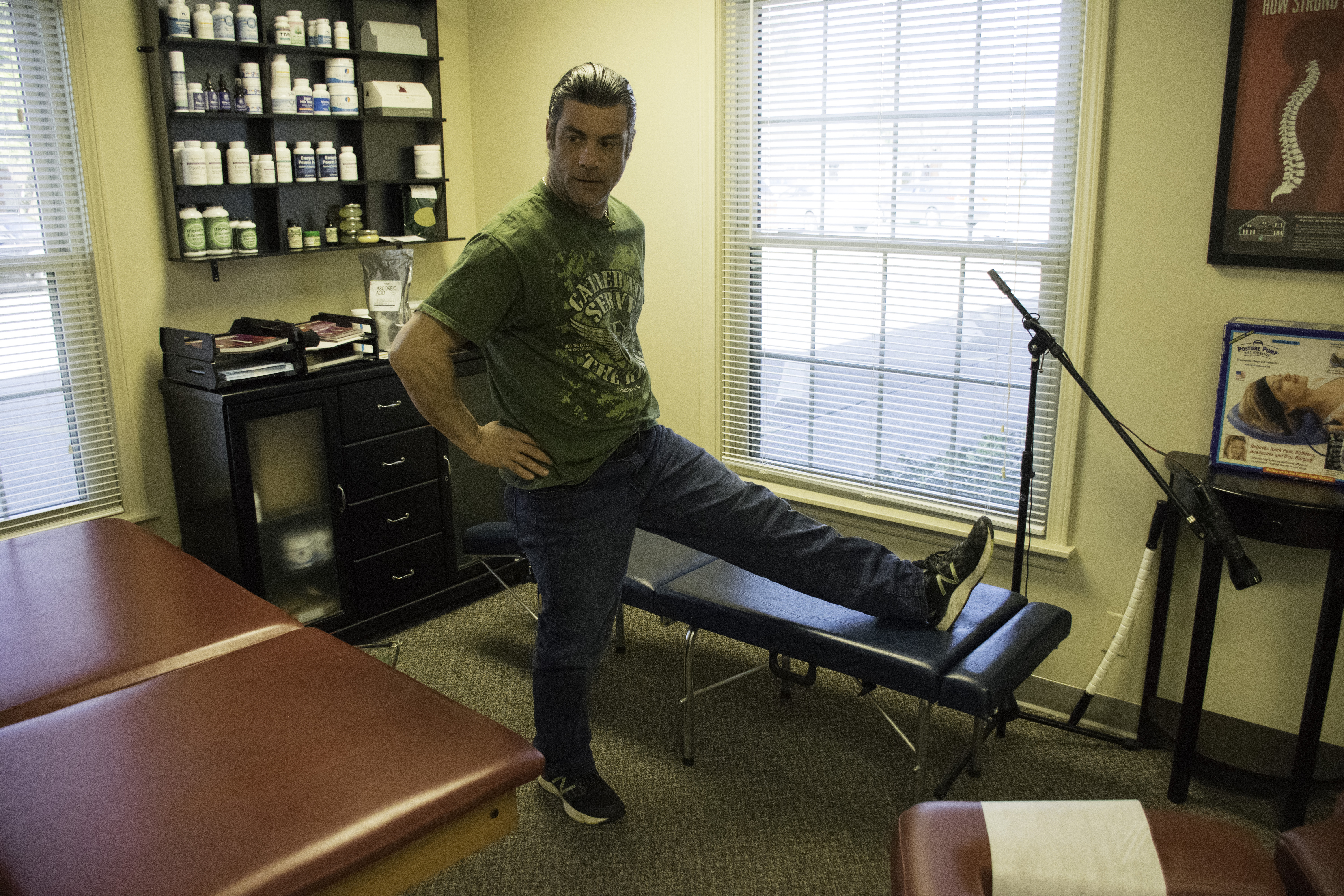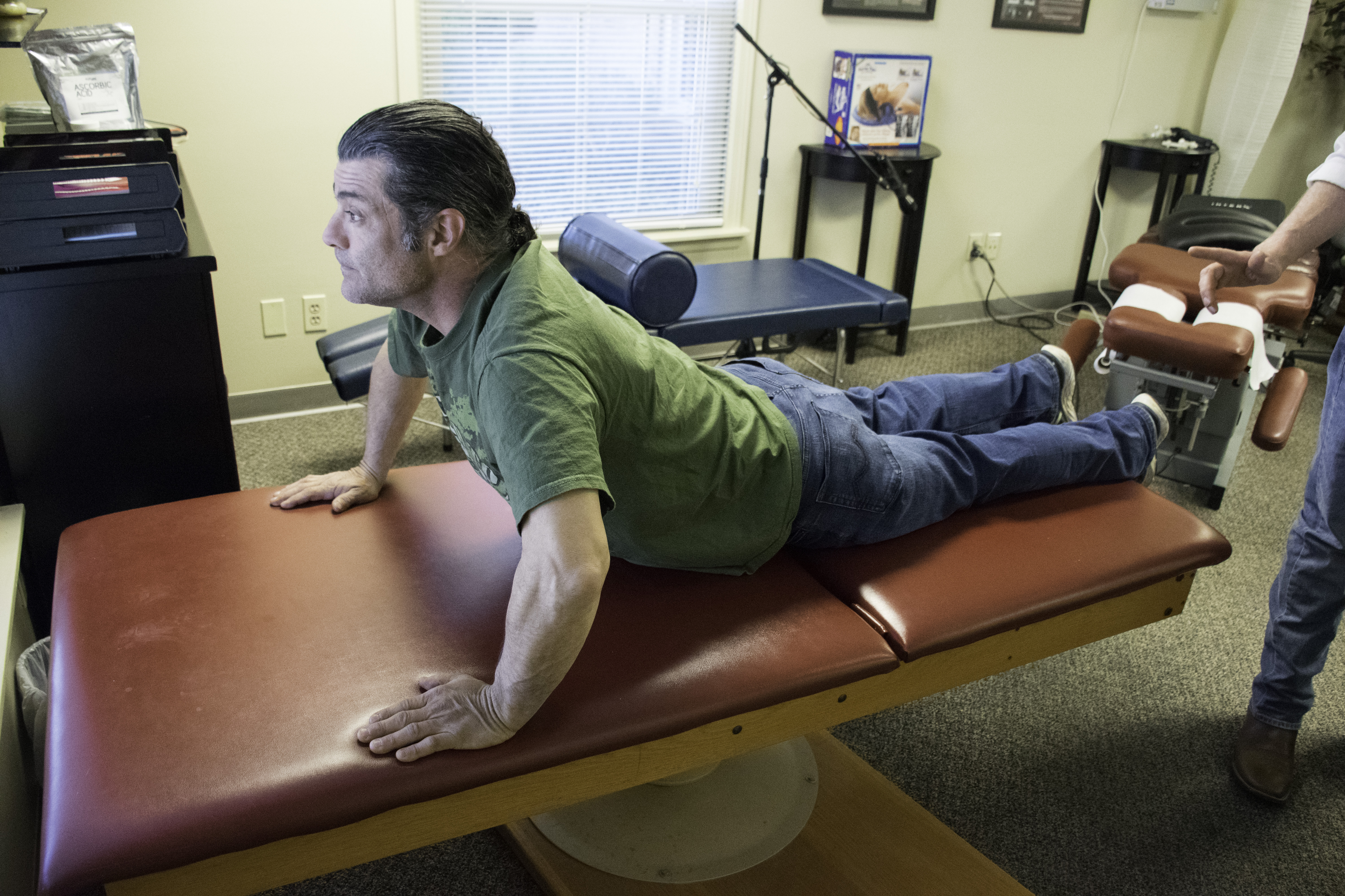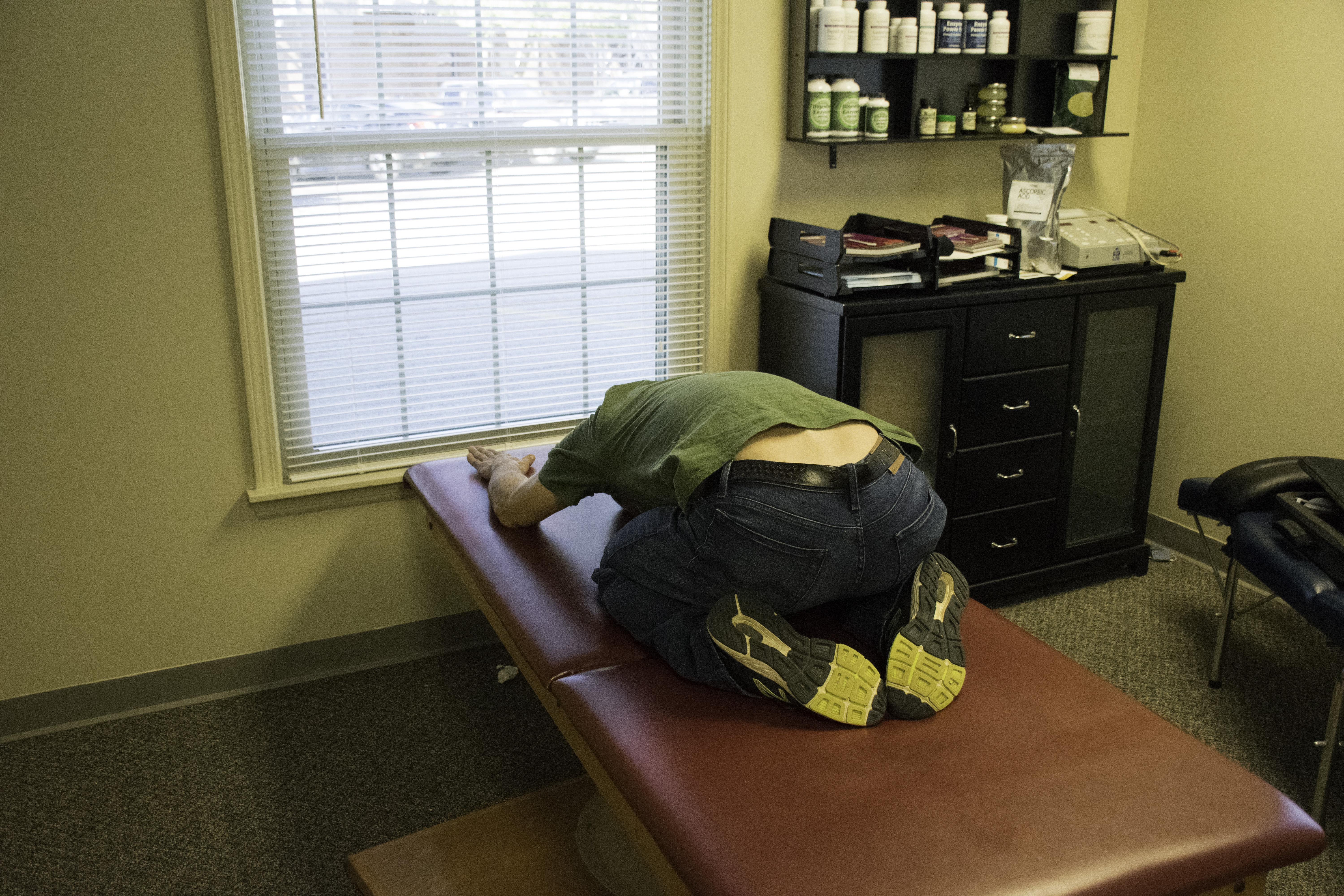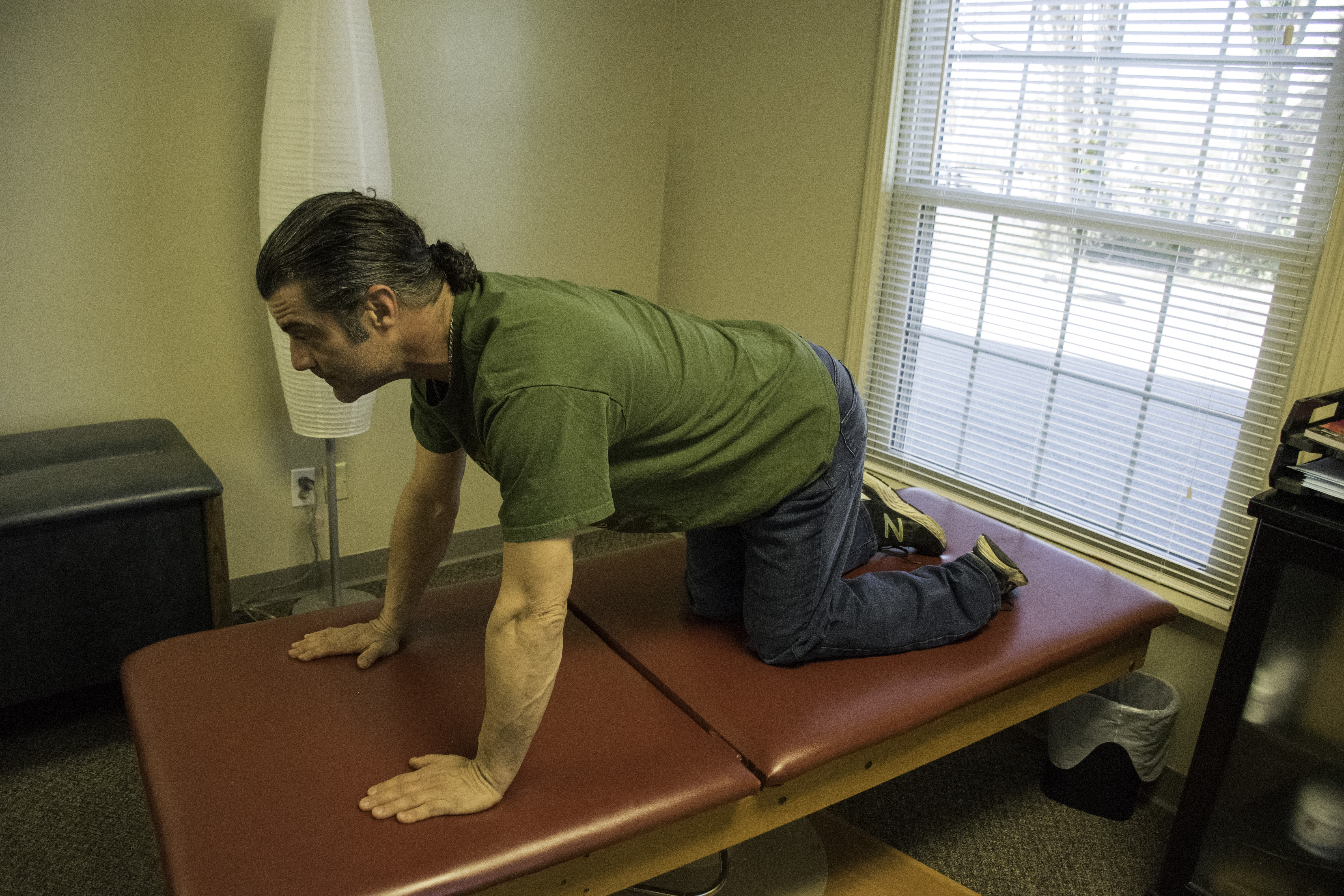 Hip Flexor Stretch – note drop the other leg off the table